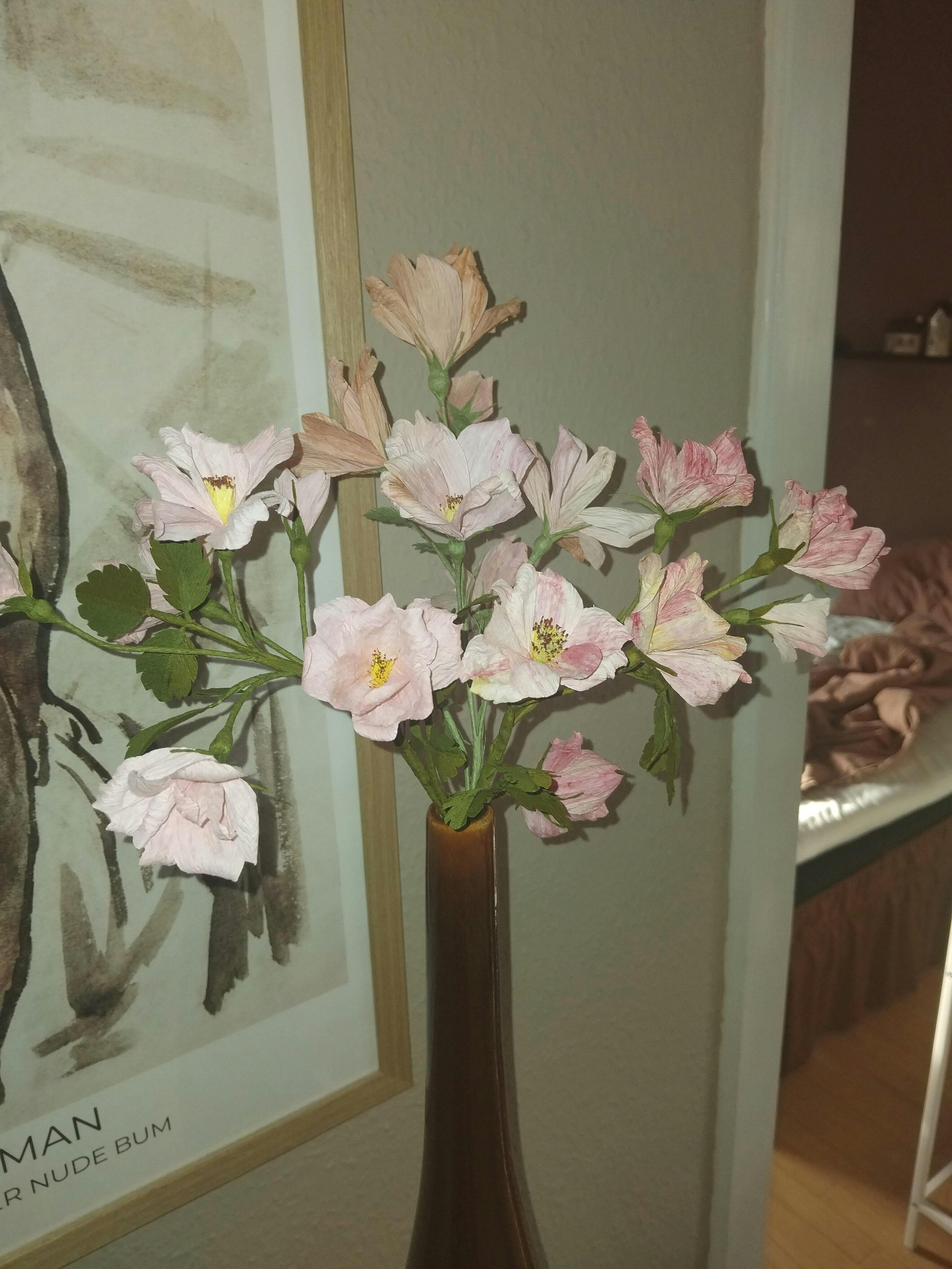 Jeg har farvet papir efter vejledning, men kunne ikke vente, så har lavet min buket med papir (farvet tidligere) fra “lager”:-)